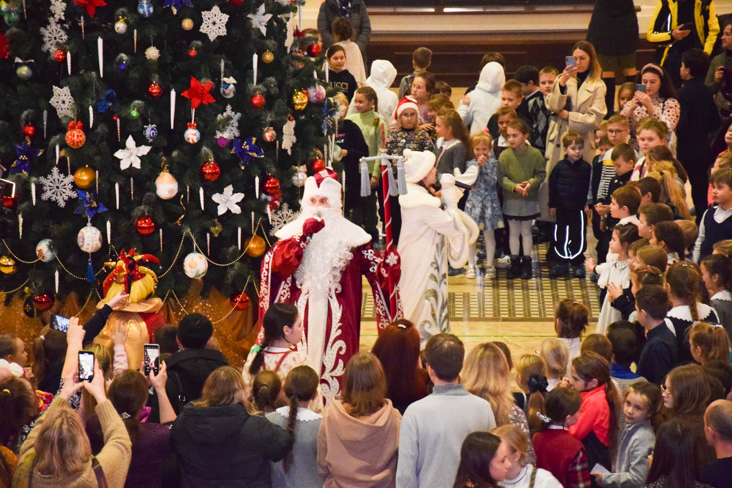 Юные тольяттинцы вместе с Дедом Морозом, Снегурочкой и сказочными персонажами на протяжении всего праздника пели новогодние песни, участвовали в веселых конкурсах и водили хоровод у 6-метровой ёлки. В завершении программы Дед Мороз и Снегурочка зажгли праздничные огни на елке и наградили победителей конкурса «Рождественский шар на ёлку» дипломами и подарками. Работы участников конкурса висели на елке.