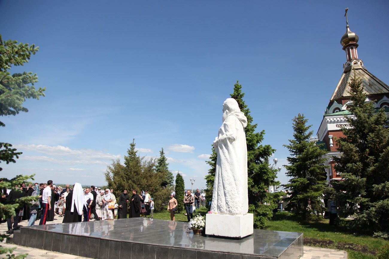 Затем митрополит Сергий возложил цветы к памятникам святителю Алексию и преподобному Сергию Радонежскому.