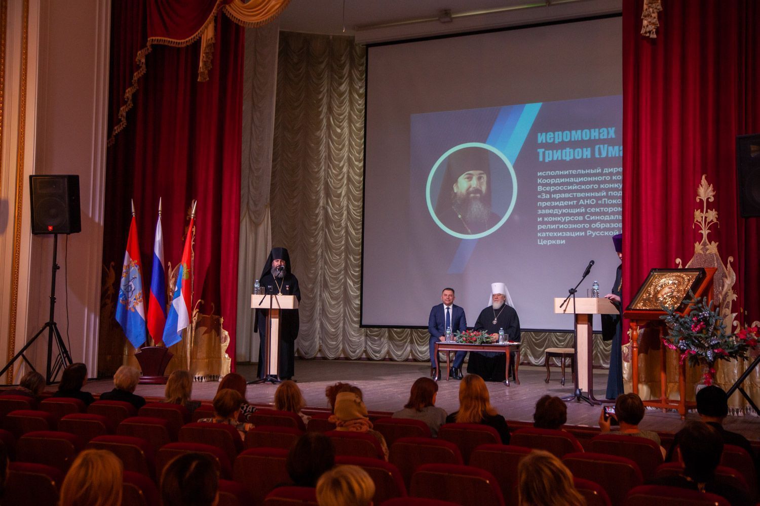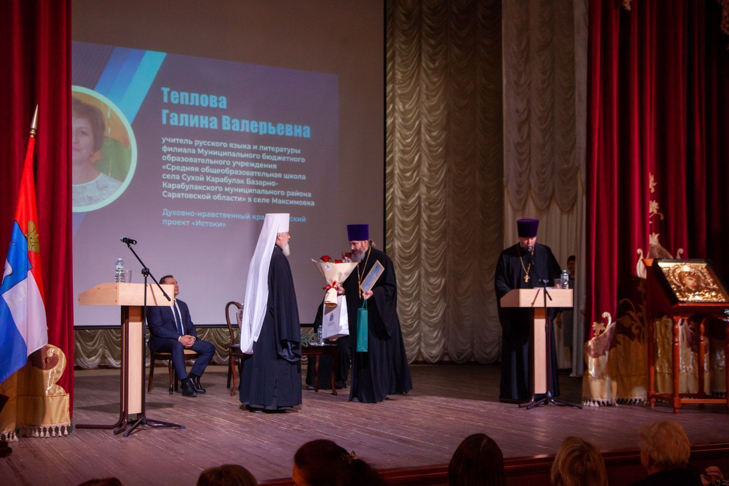 В рамках пленарного заседания Регионального этапа Рождественских образовательных чтений прошла церемония награждения победителей регионального этапа ежегодного Всероссийского конкурса в области педагогики, работы с детьми и молодежью до 20 лет «За нравственный подвиг учителя». Дипломы и памятные подарки победителям вручили митрополит Самарский и Новокуйбышевский Сергий, и федеральный инспектор по Самарский области Феоктистов Михаил Анатольевич.