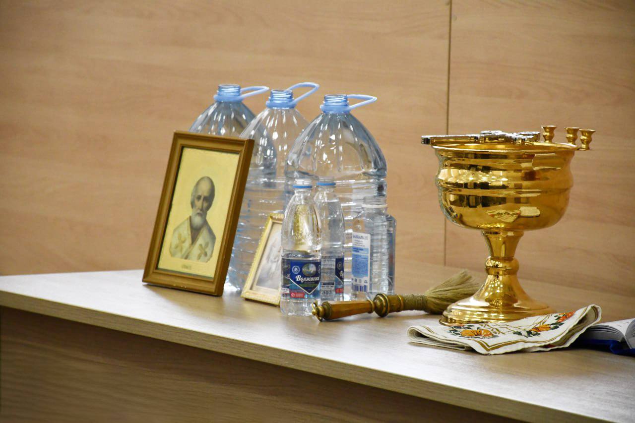 Визит приурочили к празднику Богоявления: священнослужитель совершил чин великого освящения воды непосредственно в административном здании службы.