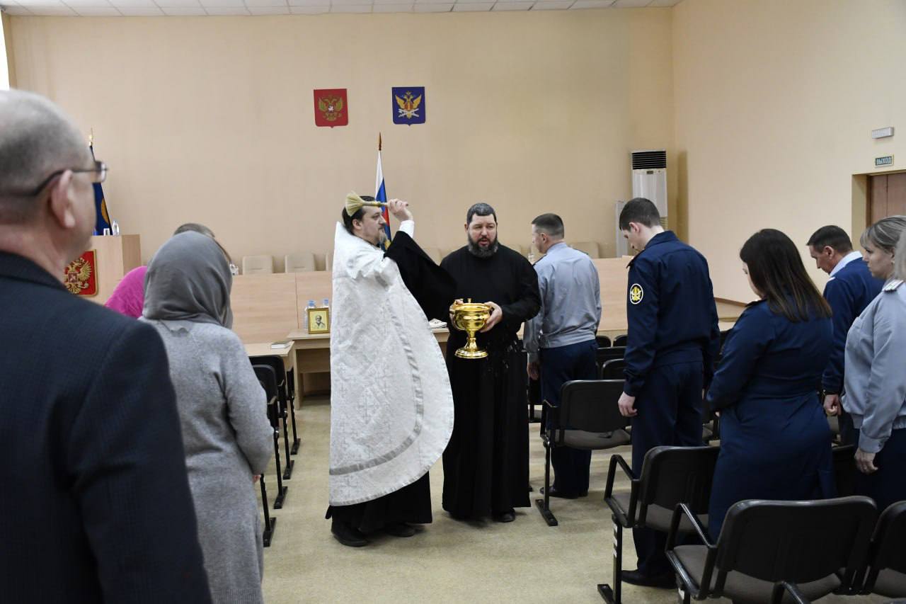 По освящении воды иерей Андрей Иванов окропил святой водой рабочие помещения ведомства.
