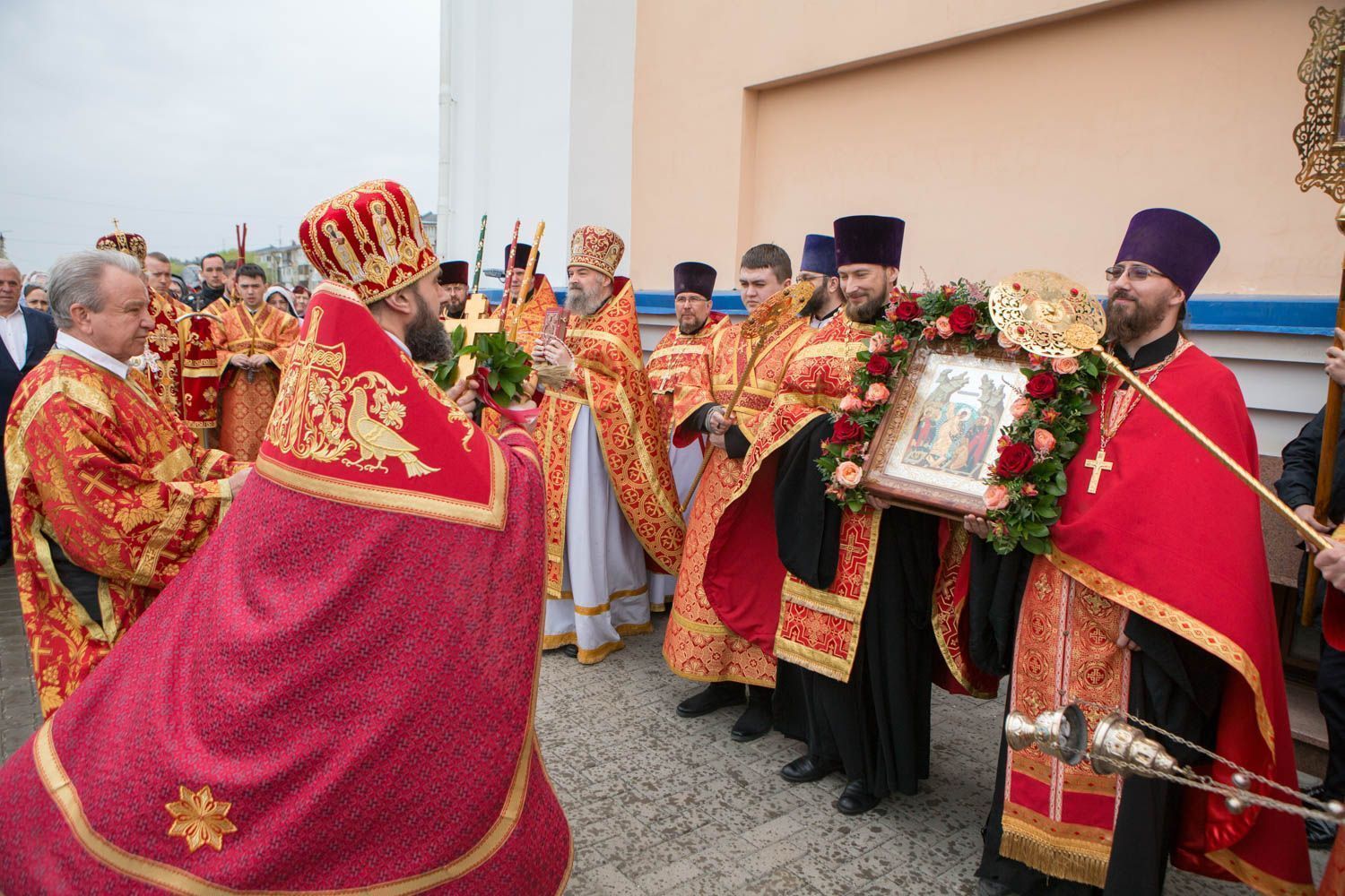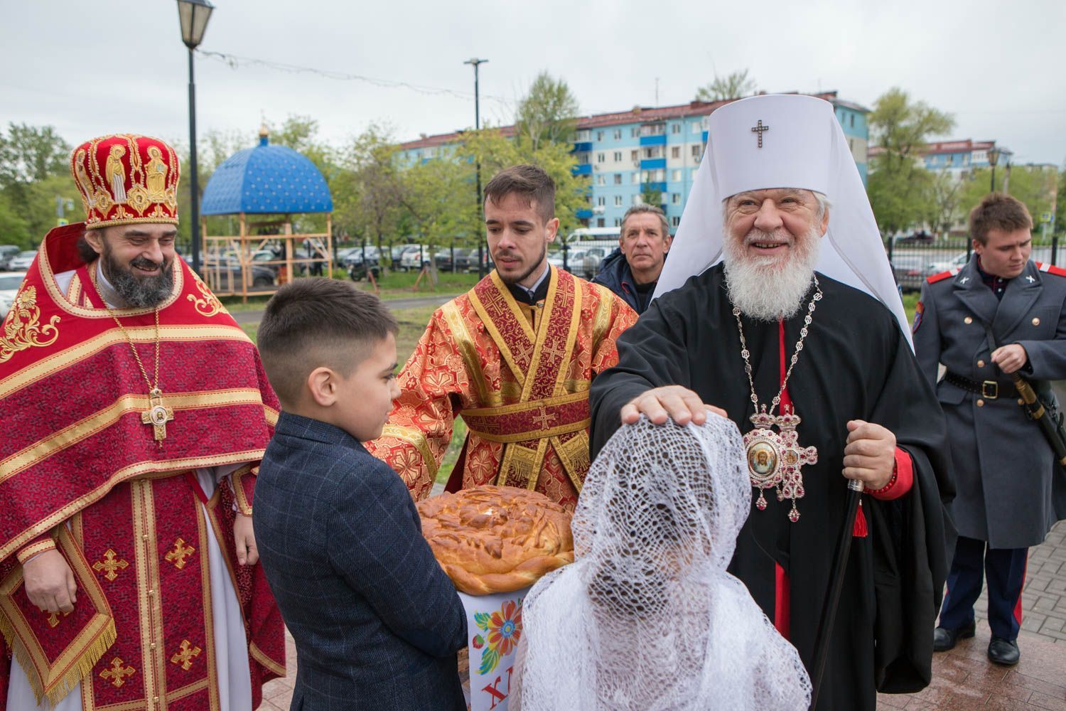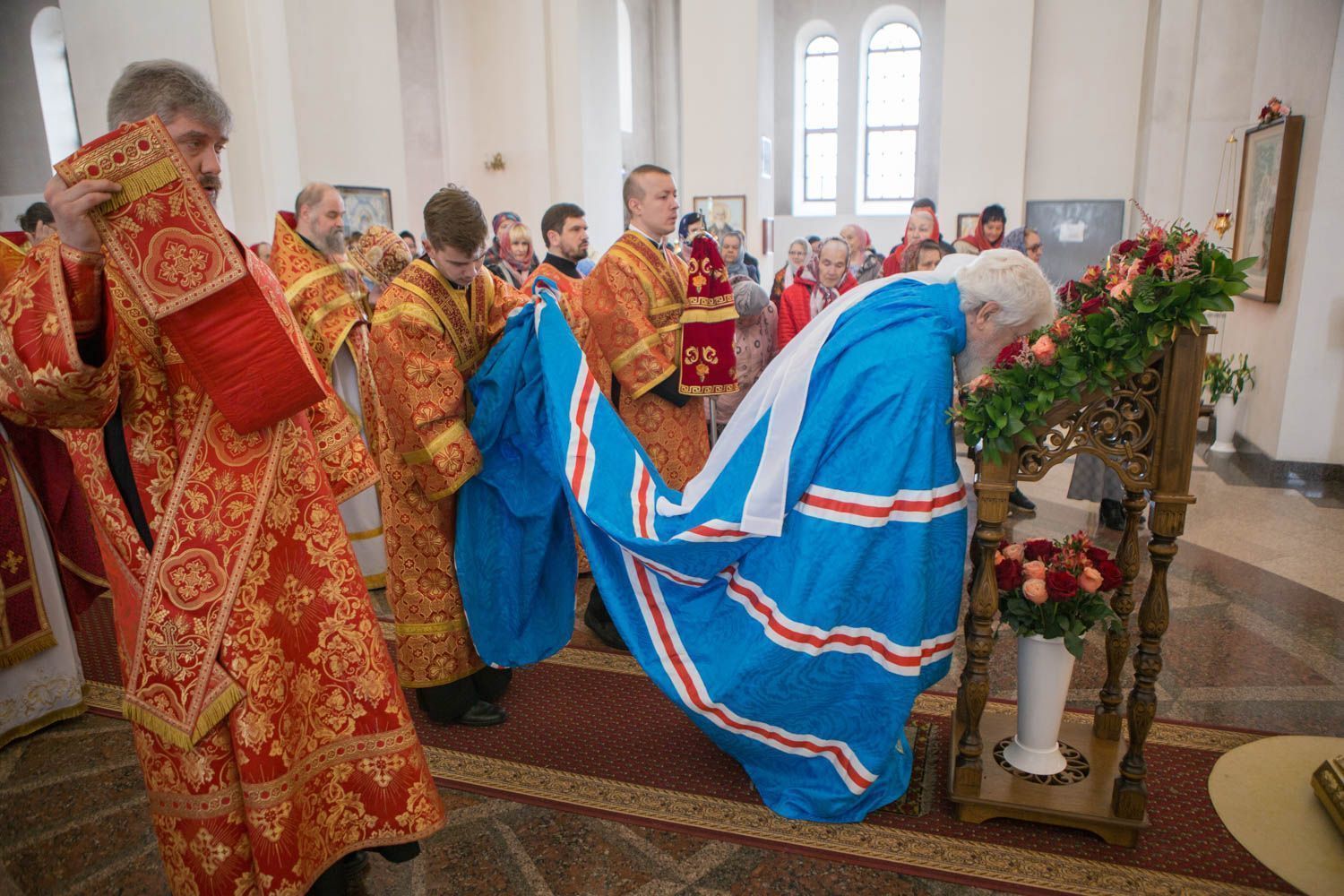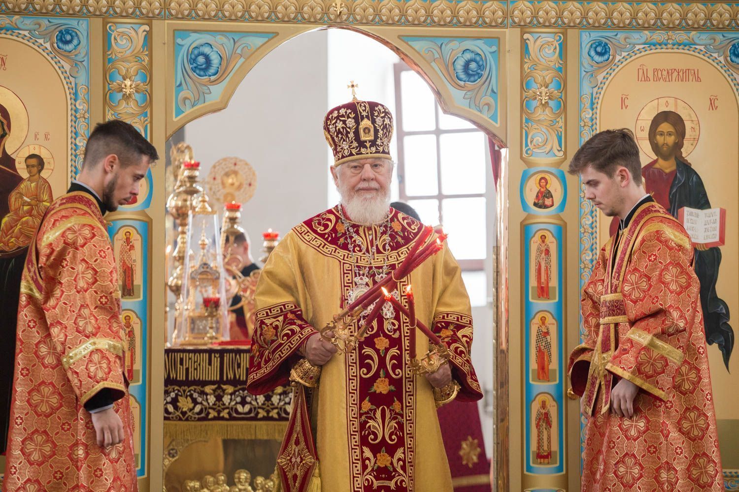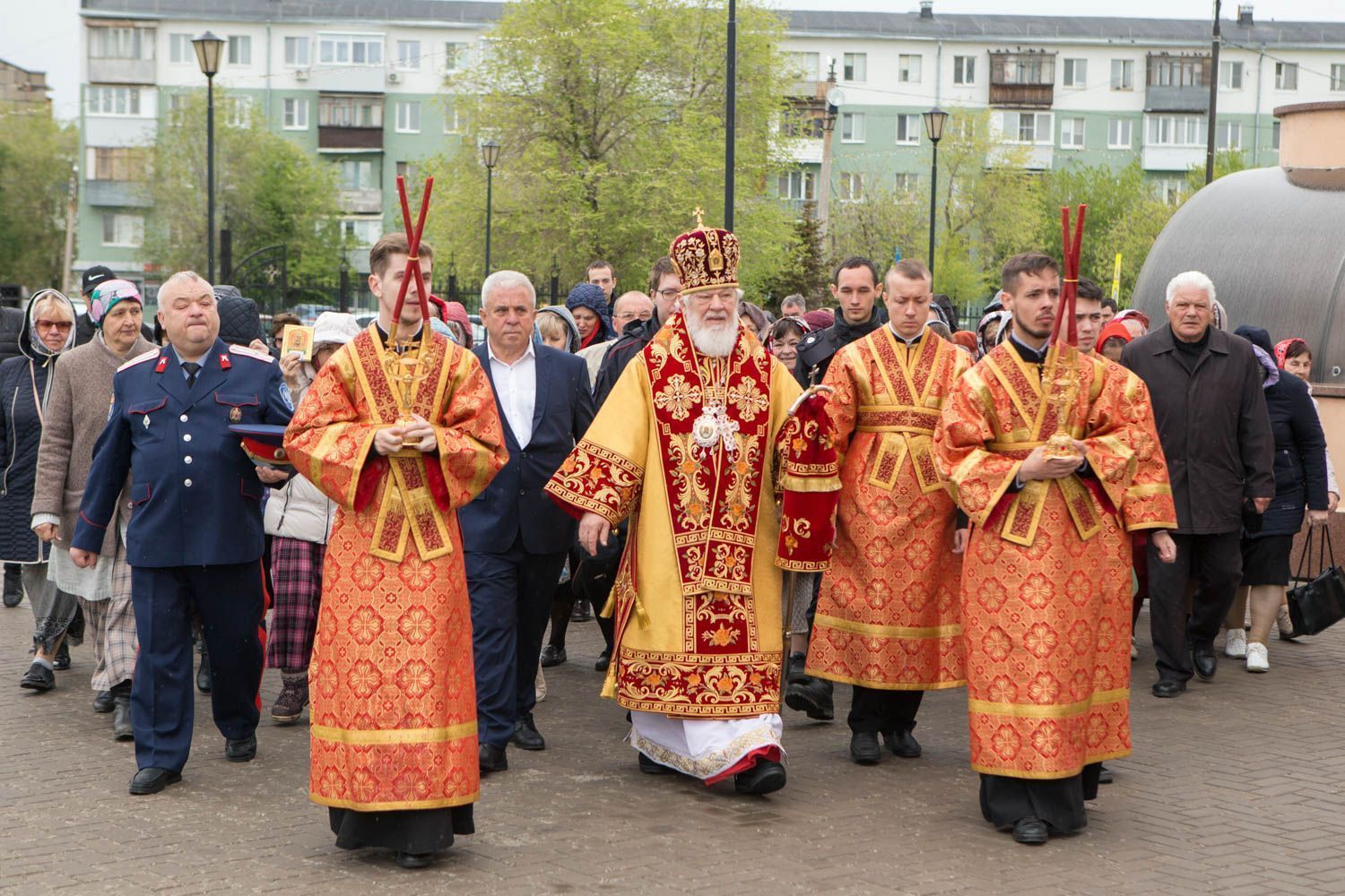 По окончании Литургии, митрополит Сергий возглавил крестный ход с чтением Евангелия и окроплением святой водой богомольцев.
