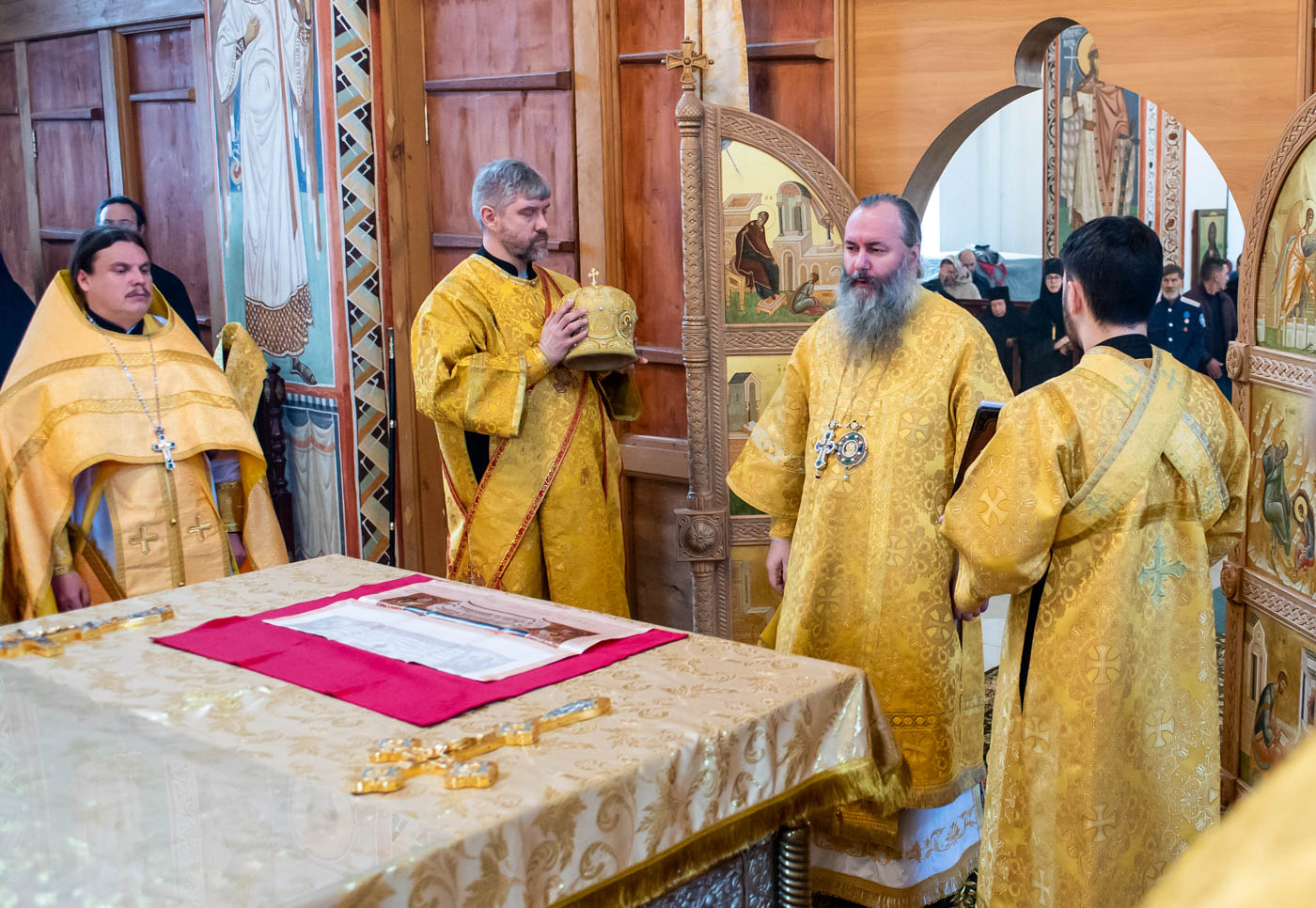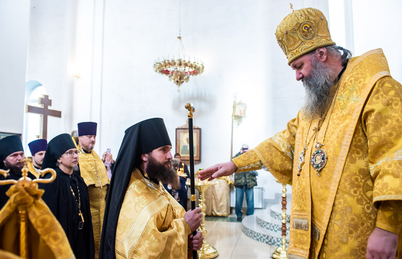 На малом входе митрополит Самарский и Новокуйбышевский Феодосий совершил чин возведения во игумена Заволжского Крестовоздвиженского мужского монастыря иеромонаха Марка (Матяскина).