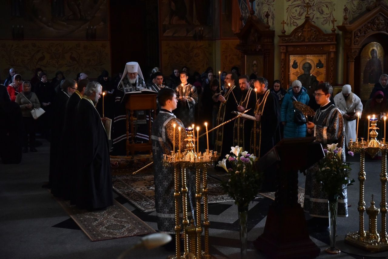 Сегодня, 1 марта 2023 г, митрополит Самарский и Новокуйбышевский Сергий совершил великое повечерие с чтением Великого покаянного канона преподобного Андрея Критского в Иверском монастыре г. Самара.