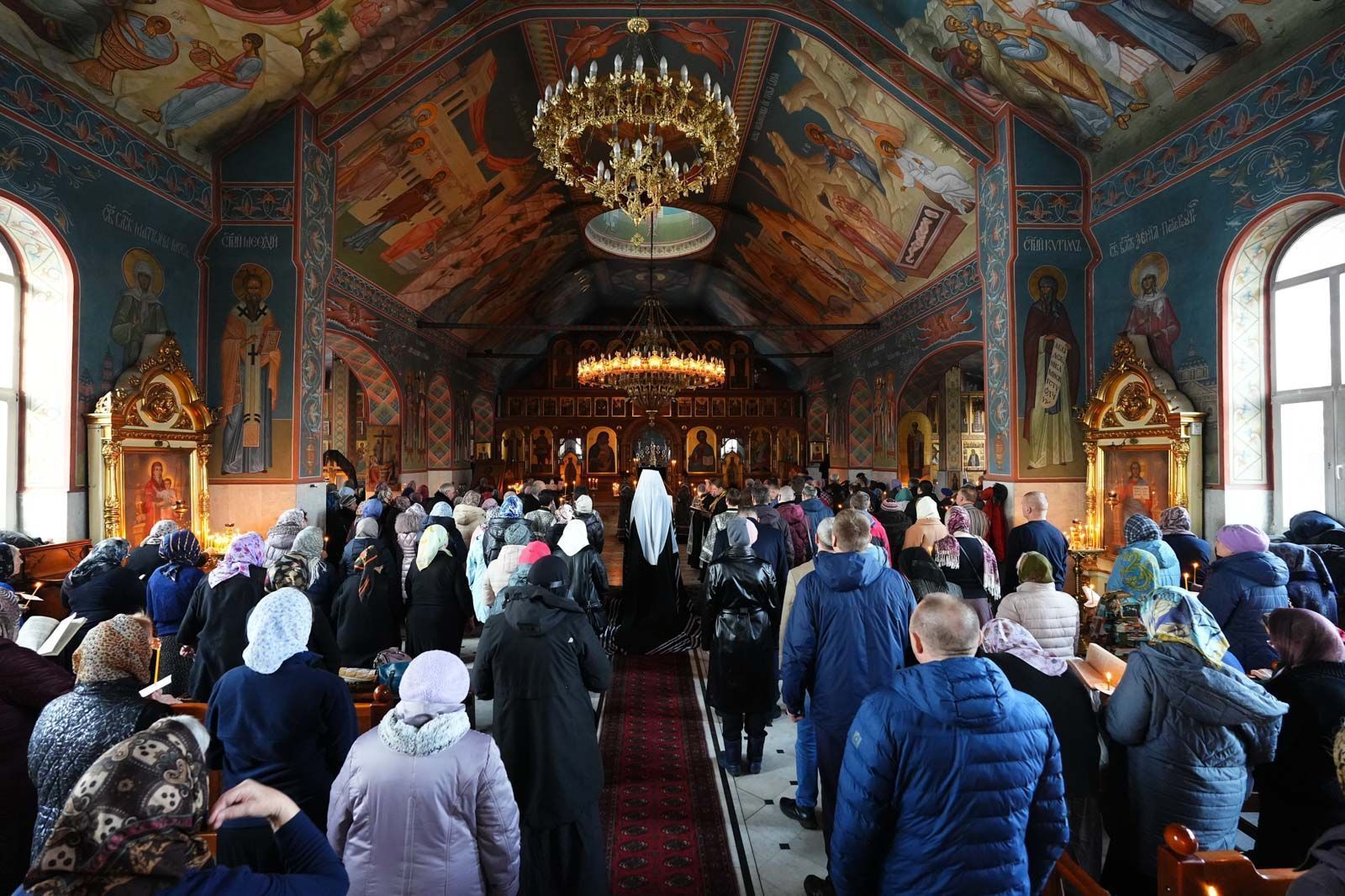 За богослужением молилось духовенство и братия обители, многочисленные прихожане.