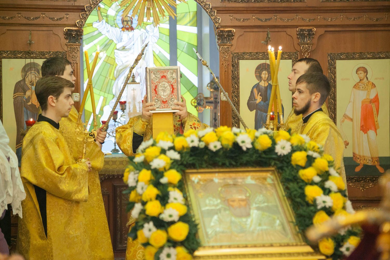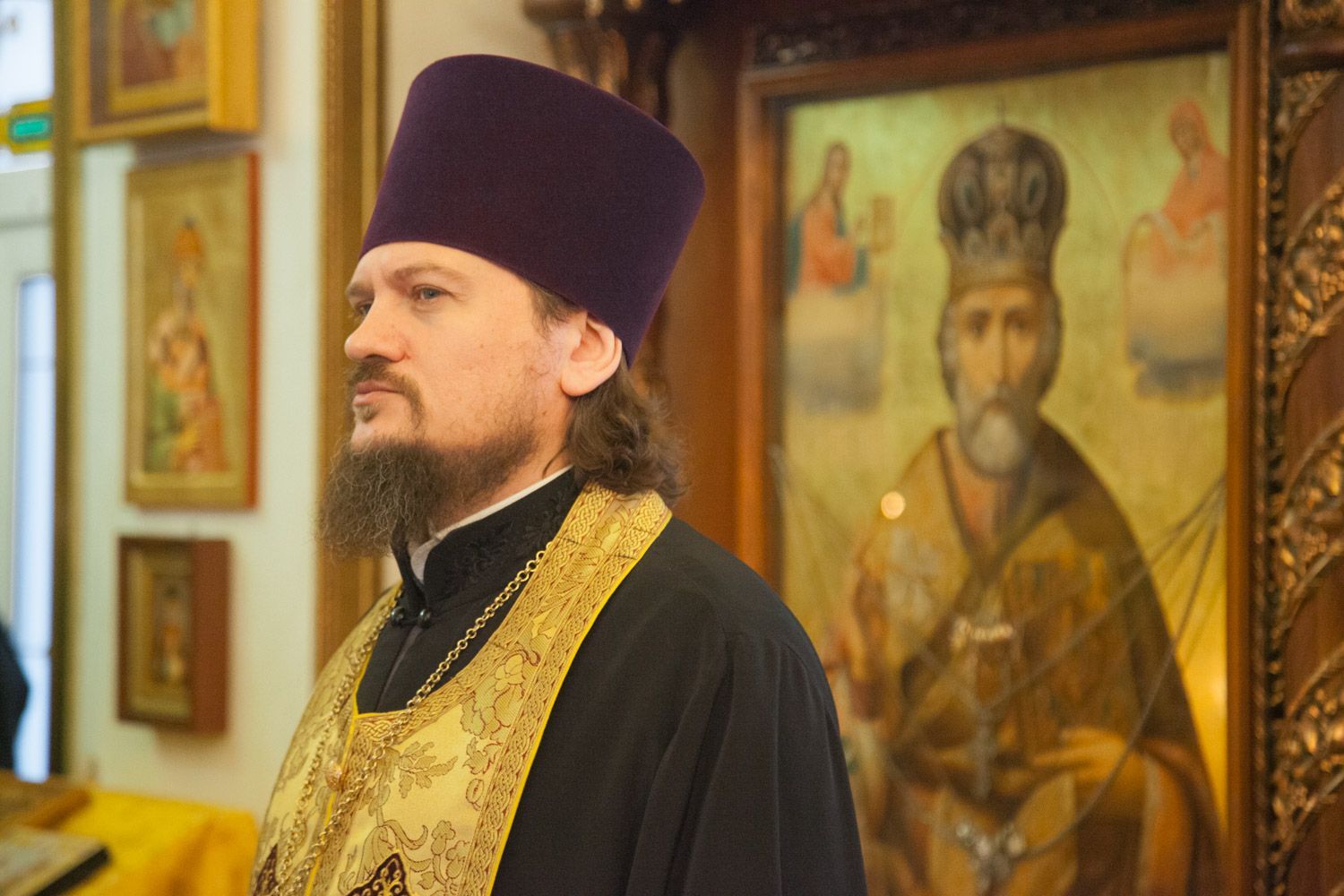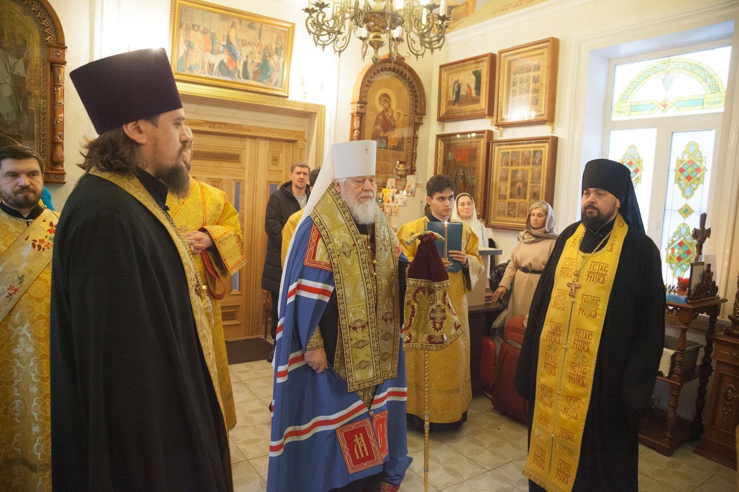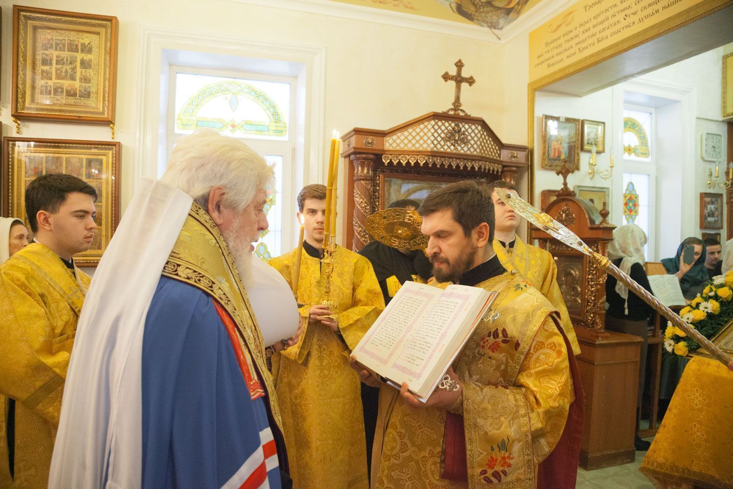 Его Высокопреосвященству сослужили: протоиерей Иоанн Мохов, настоятель храма в честь святителя Спиридона Тримифунтского города Самары и иеромонах Никита (Корежин), личный секретарь митрополита.