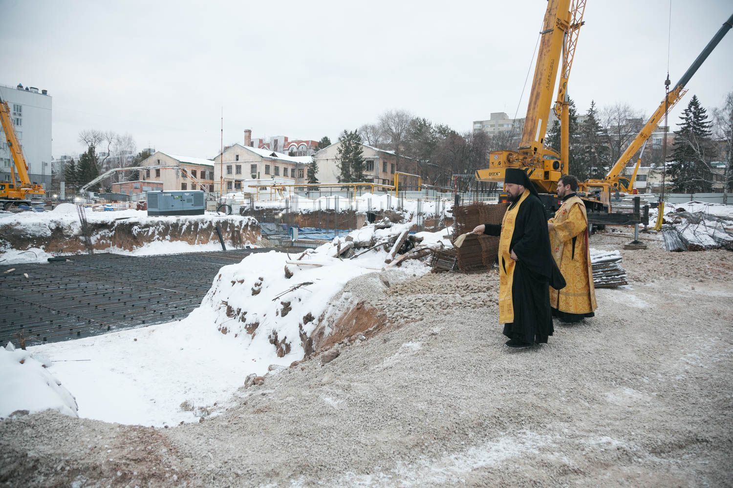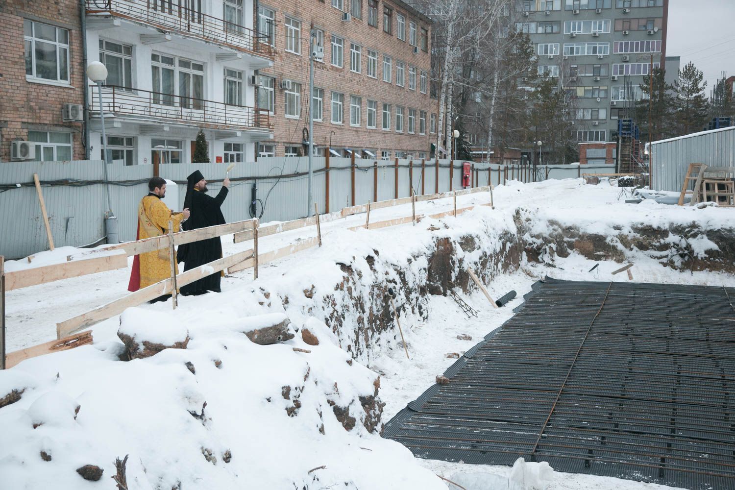 По окончанию молебна владыка митрополит благословил место под строительство нового хирургического комплекса, который возводится на территории госпиталя.