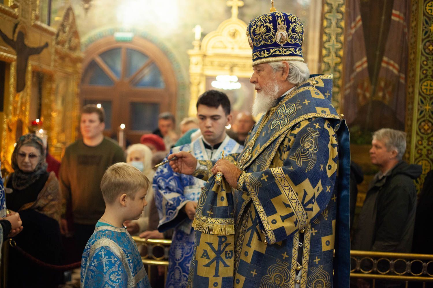 Вечером 3 декабря 2021 года, в канун праздника Введения во храм Пресвятой Владычицы нашей Богородицы и Приснодевы Марии и дня интронизации святителя Тихона, Патриарха Всероссийского, митрополит Самарский и Новокуйбышевский Сергий совершил всенощное бдение в Покровском кафедральном соборе города Самары.