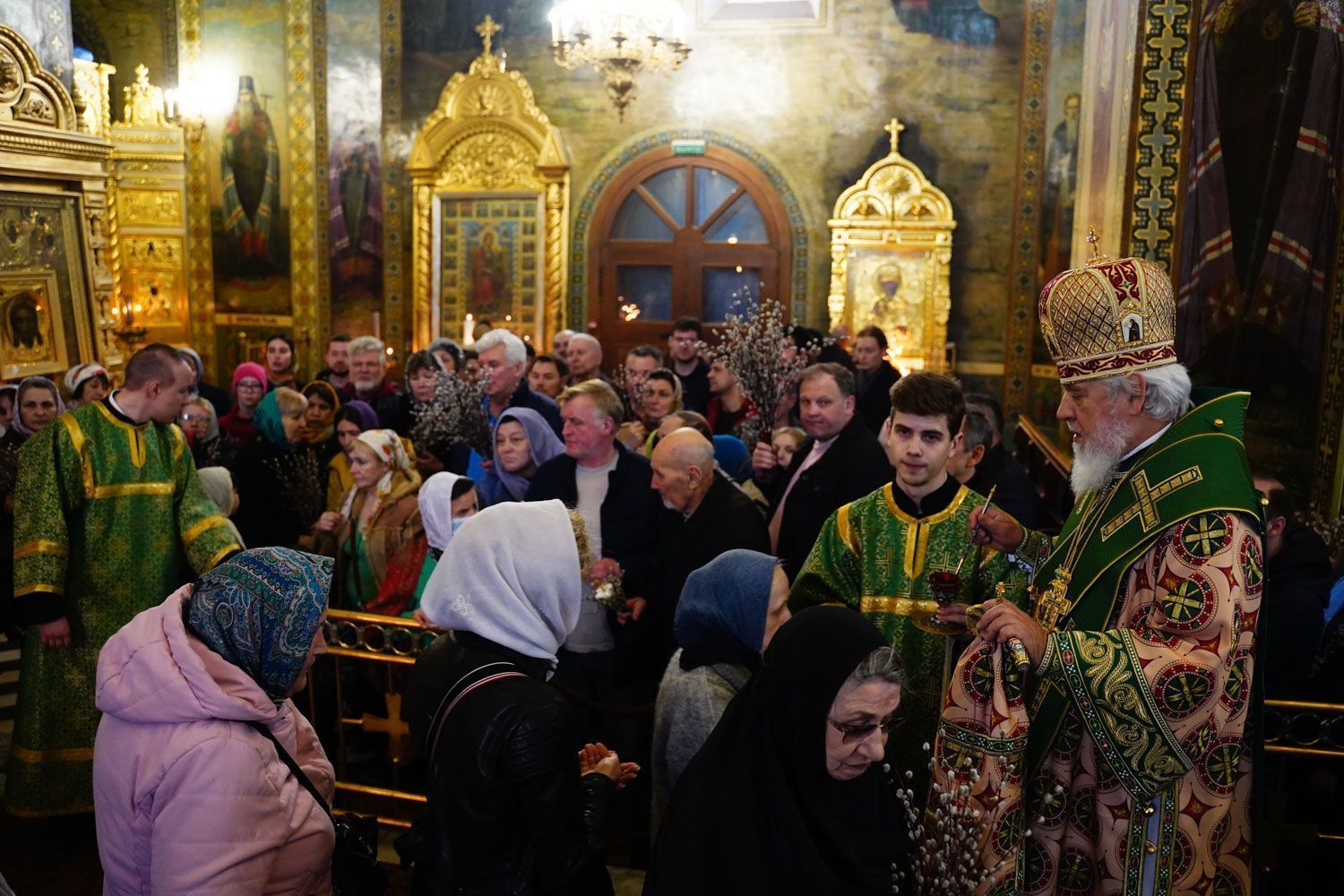 За богослужением владыка Сергий совершил традиционное освящение ваий – веточек вербы.