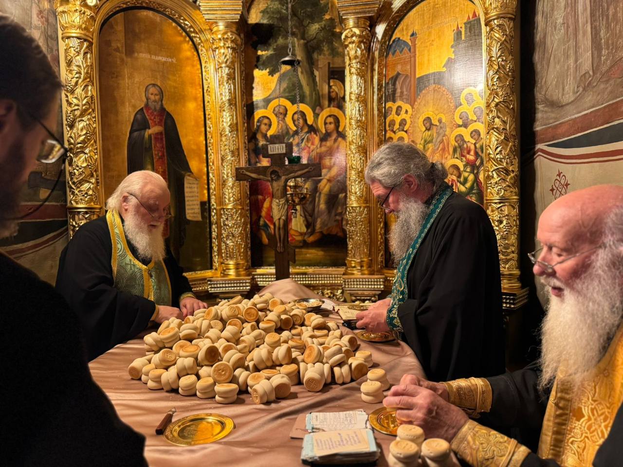 По традиции, в этот вечер богослужения совершались одновременно в различных храмах обители: