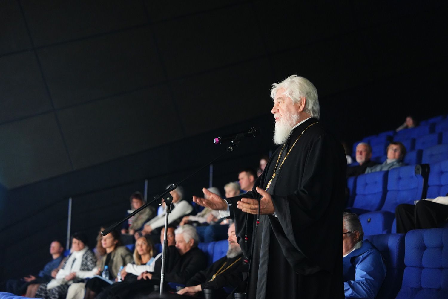 По завершению молебна все собравшиеся перешли в кинотеатр. К гостям и участникам события со словами приветствия обратились Глава Самарской митрополии, митрополит Самарский и Новокуйбышевский Сергий; вице-президент холдинга «ГлоблВижн», член общественной палаты Самарской области Ольга Ивановна Суркова и генеральный директор телеканала «Спас» Борис Вячеславович Корчевников.