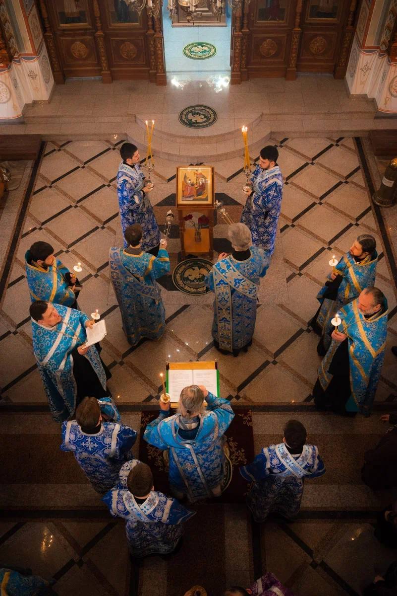 Архиерейское вечернее богослужение с чтением акафиста Пресвятой Богородице в Благовещенском соборе г. Самары