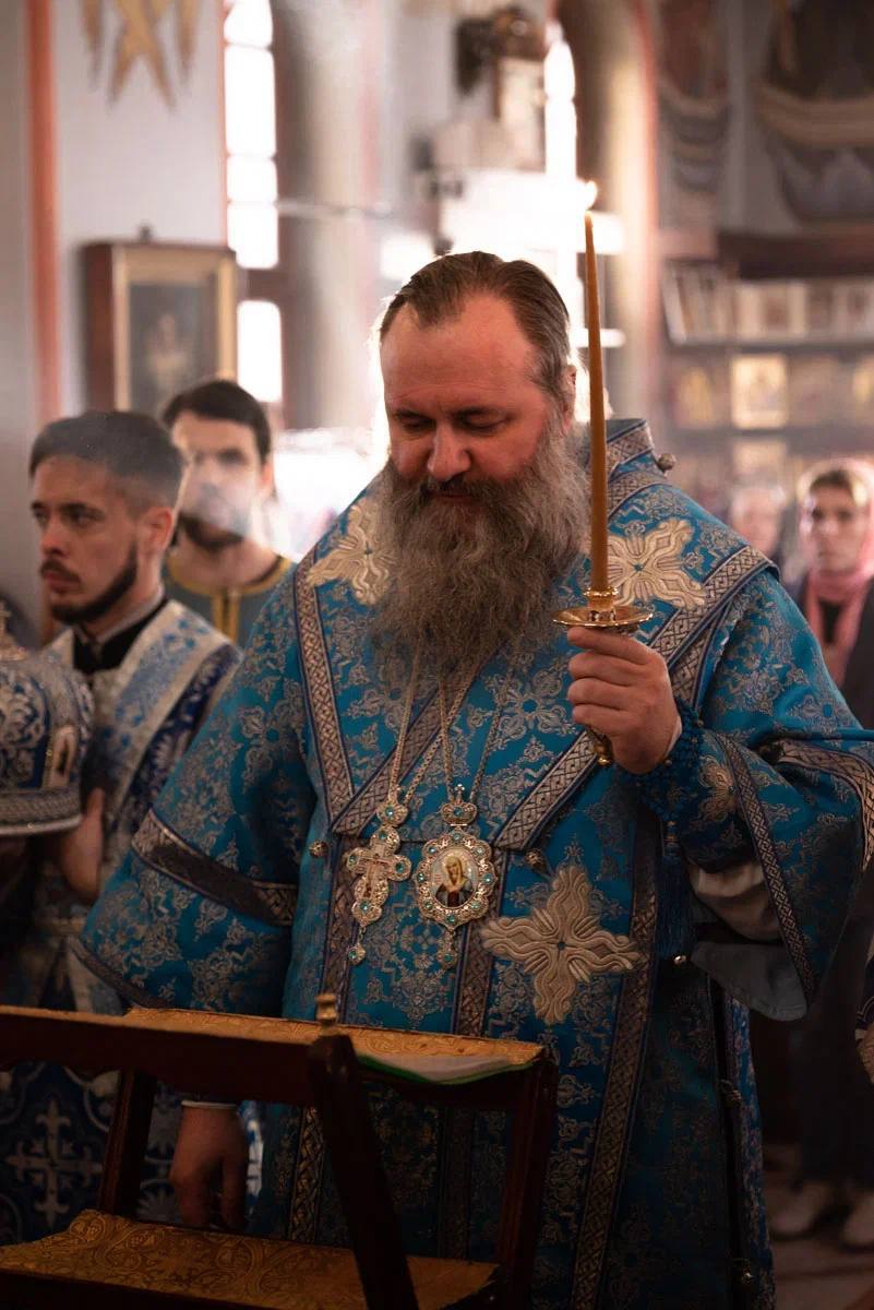 27 марта, в пятницу, митрополит Самарский и Новокуйбышевский Феодосий возглавил вечернее богослужение с чтением акафиста Божией Матери в Благовещенском соборе г. Самары.