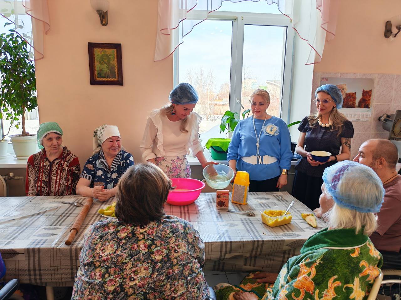 В состав делегации вошли многодетные матери, которые организовали для подопечных учреждения творческий вечер и совместное приготовление праздничной выпечки.