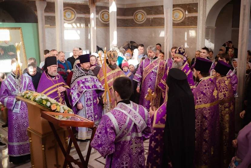 В воскресенье, 8 марта, митрополит Самарский и Новокуйбышевский Феодосий возглавил литургию престольного праздника храма в честь блаженной Матроны Московской п. Гранный.
