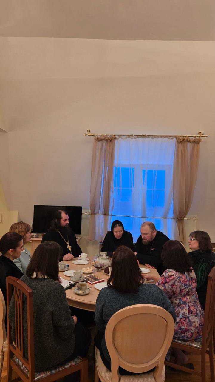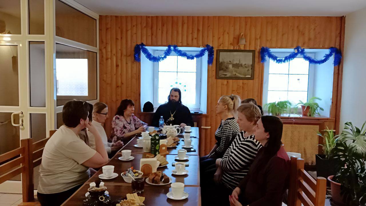 В ходе теплой беседы собравшиеся затронули глубокие и болезненные темы, волнующие семьи военнослужащих: миссия семьи в условиях военного времени, готовность общества к возвращению бойцов, отношение к детям участников СВО в образовательной среде, внутренние переживания матерей и жен, а также вопрос жизни с болью и тревогой. Разговор получился непростым, но искренним и необходимым — таким, в котором можно было не только услышать слово пастыря, но и открыто поделиться тем, что лежит на сердце.