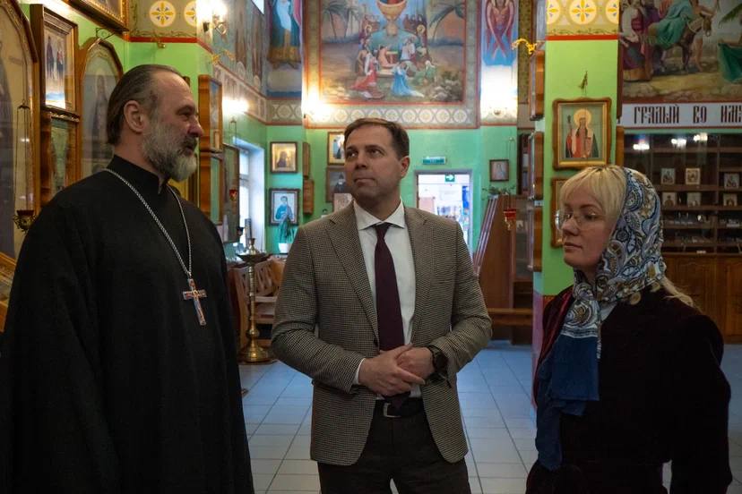 Архипастыря встречали и сопровождали ректор СамГУПС Максим Алексеевич Гаранин, заведующий кафедрой «Теология» профессор протоиерей Олег Агапов и настоятель храма протоиерей Илья Борисов.