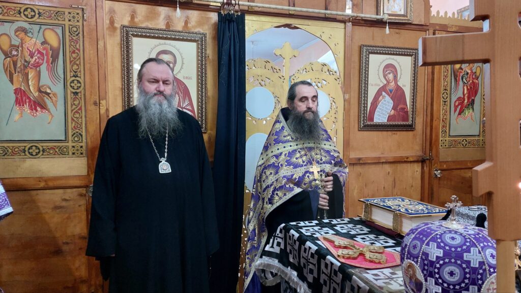 По отпусте было совершено славление Божией Матери и поклонение Кресту, после чего он, по традиции, был занесен в алтарь.