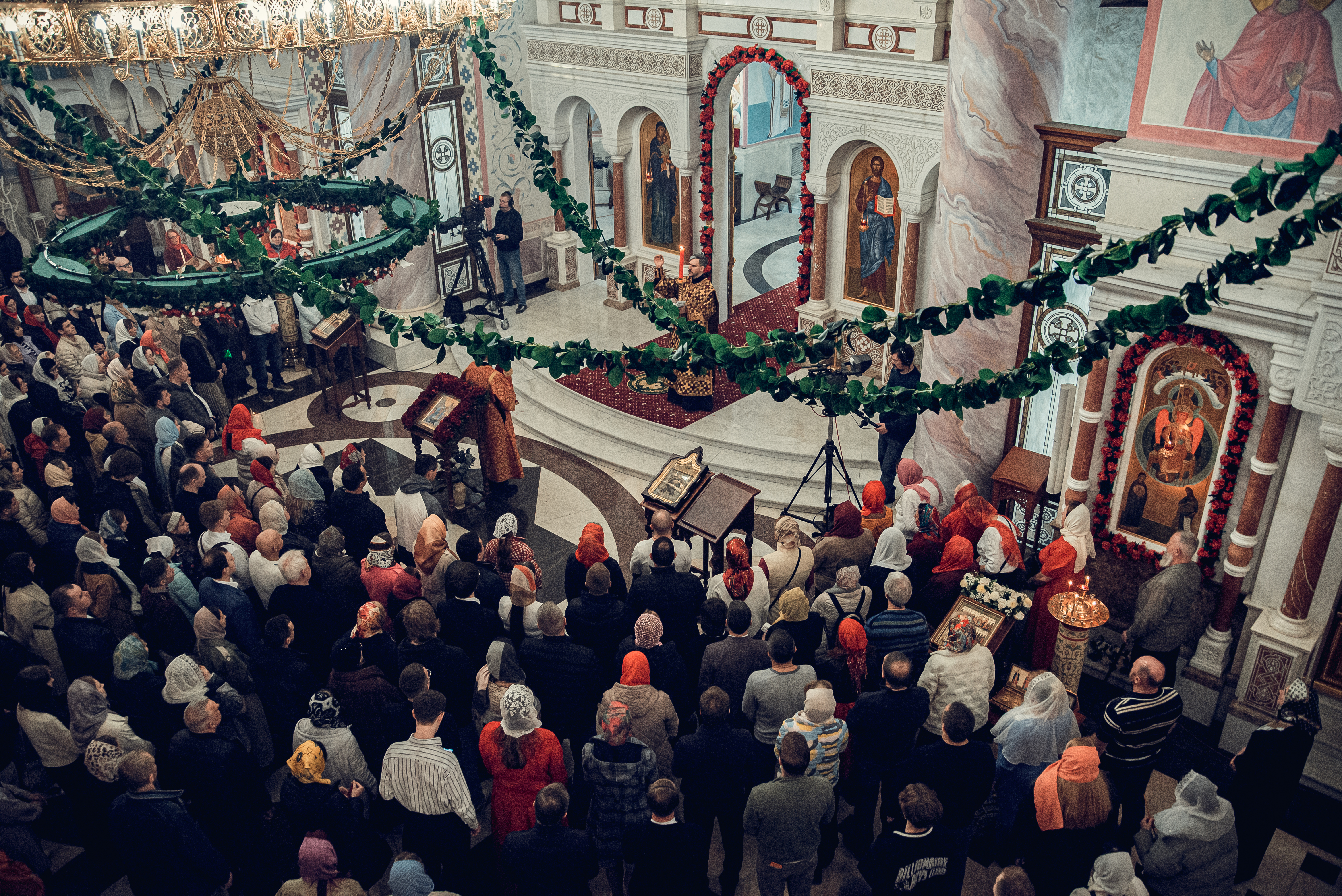 Литургии предшествовали полунощница, крестный ход, совершенный вокруг собора под пение стихиры «Воскресение Твое Спасе…», и Пасхальная заутреня.