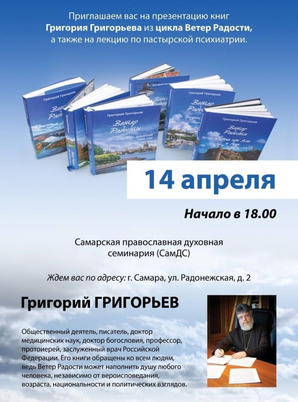 14 апреля в 18:00 - презентация книг и лекция по пастырской психиатрии в Самарской православной духовной семинарии.