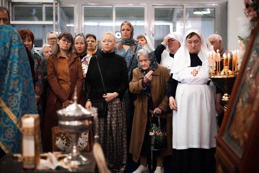 Верующие собрались для совместной молитвы у чтимого образа Божией Матери «Млекопитательница» — одной из особо почитаемых святынь Православной Церкви, представленной на выставке.