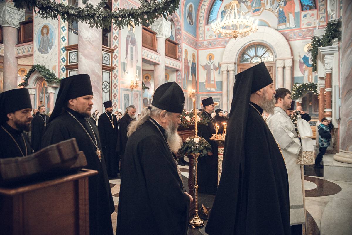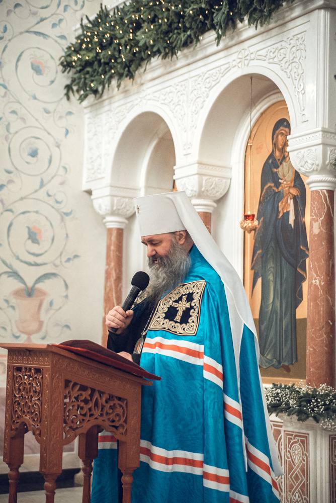 За богослужением молились прихожане и гости собора. По окончании вечерни Высокопреосвященнейший владыка Феодосий огласил Рождественское послание, обращенное к духовенству и верующим Самарской епархии.
