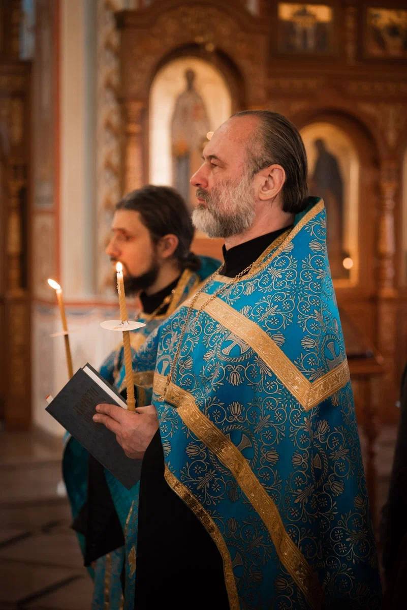 27 марта, в пятницу, митрополит Самарский и Новокуйбышевский Феодосий возглавил вечернее богослужение с чтением акафиста Божией Матери в Благовещенском соборе г. Самары.