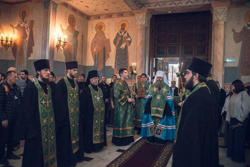 4 апреля, накануне праздника Входа Господня во Иерусалим, митрополит Самарский и Новокуйбышевский Феодосий возглавил всенощное бдение в Софийском соборе г. Самары.