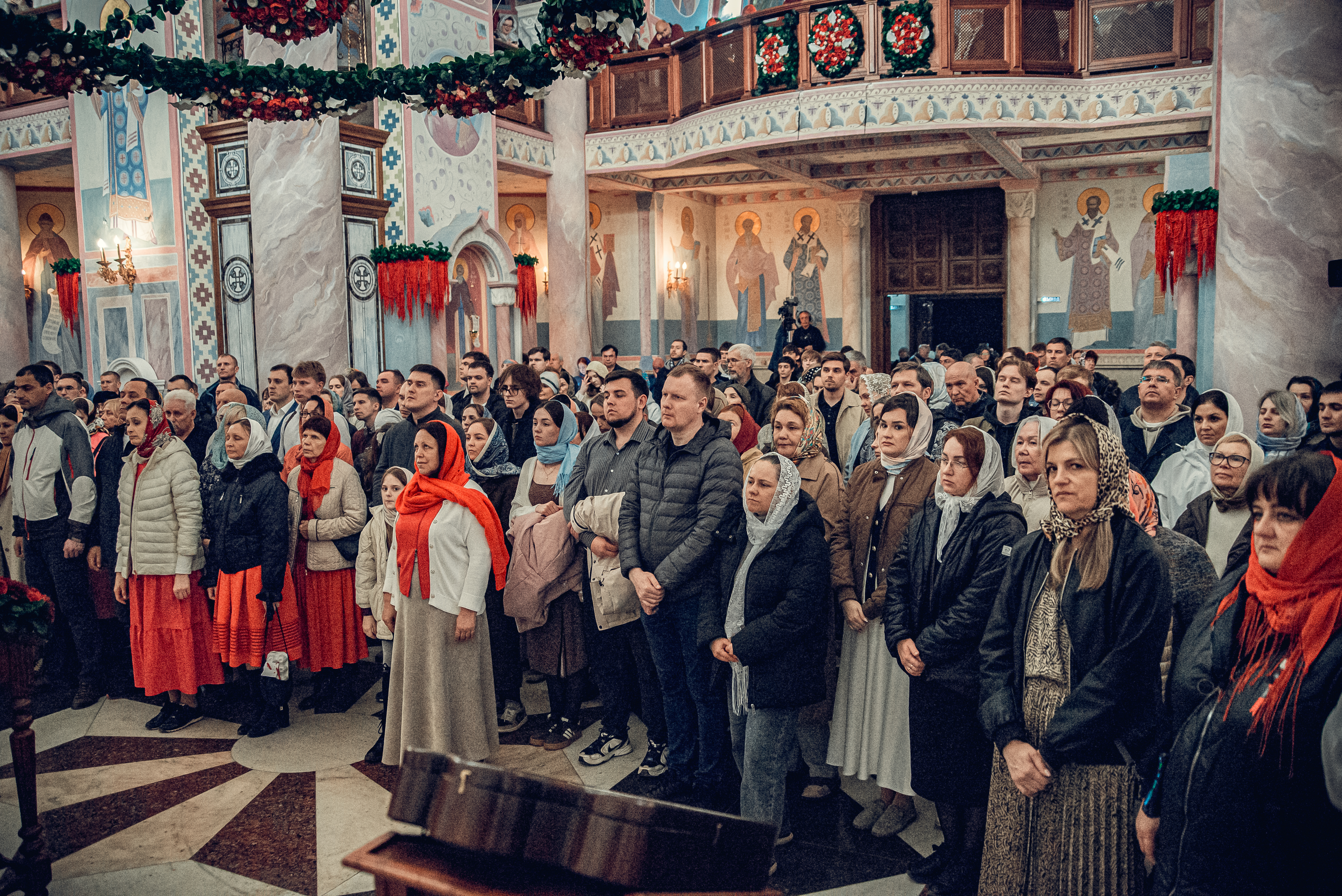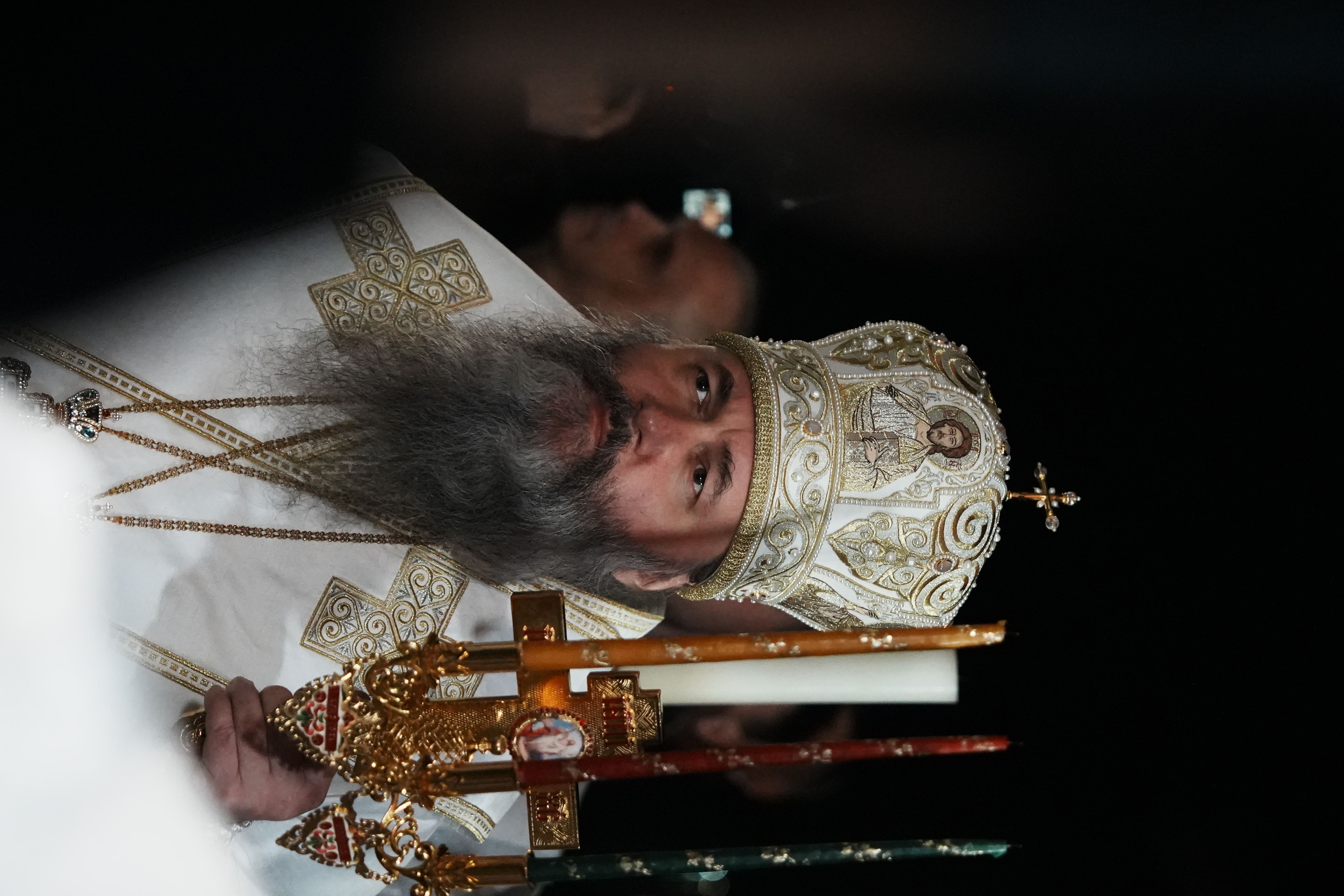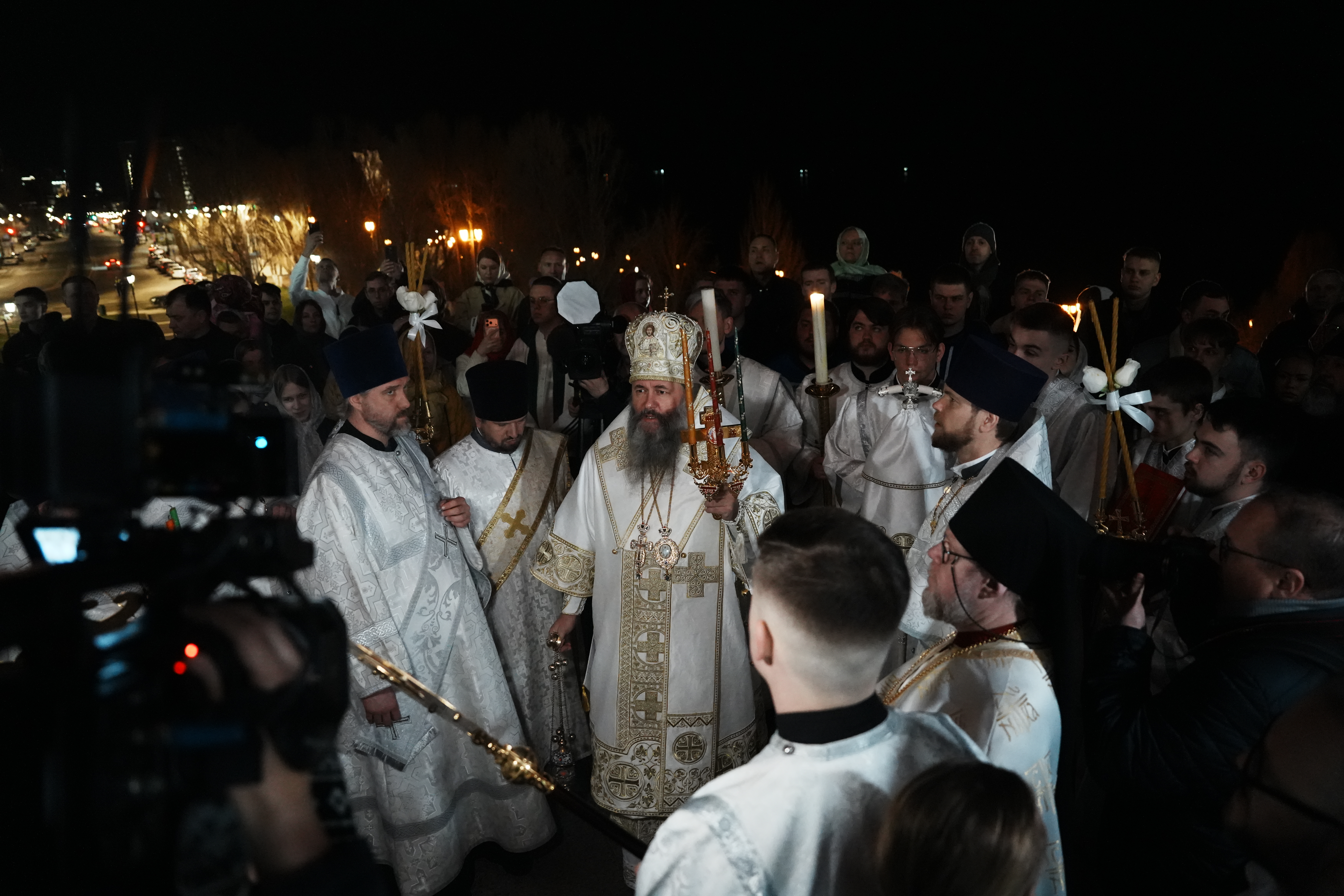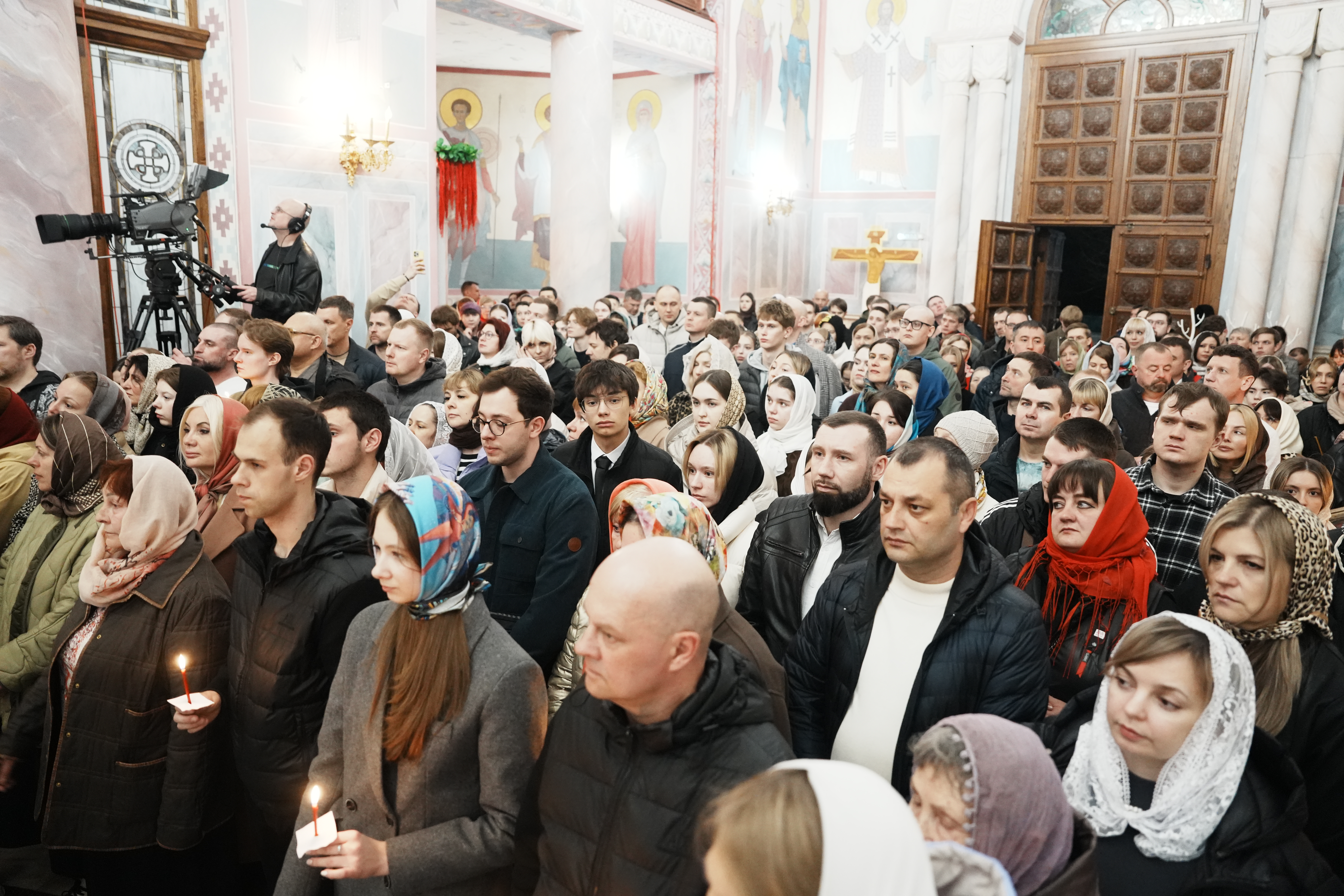 Литургии предшествовали полунощница, крестный ход, совершенный вокруг собора под пение стихиры «Воскресение Твое Спасе…», и Пасхальная заутреня.