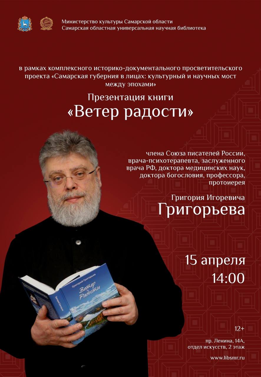 15 апреля в 14:00 - презентация книги «Ветер Радости» в Самарской областной универсальной научной библиотеке.