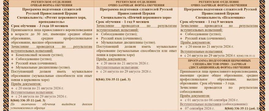 Регентское отделение (очная форма):