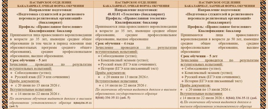 — Принимаются лица православного вероисповедания со средним или высшим образованием.