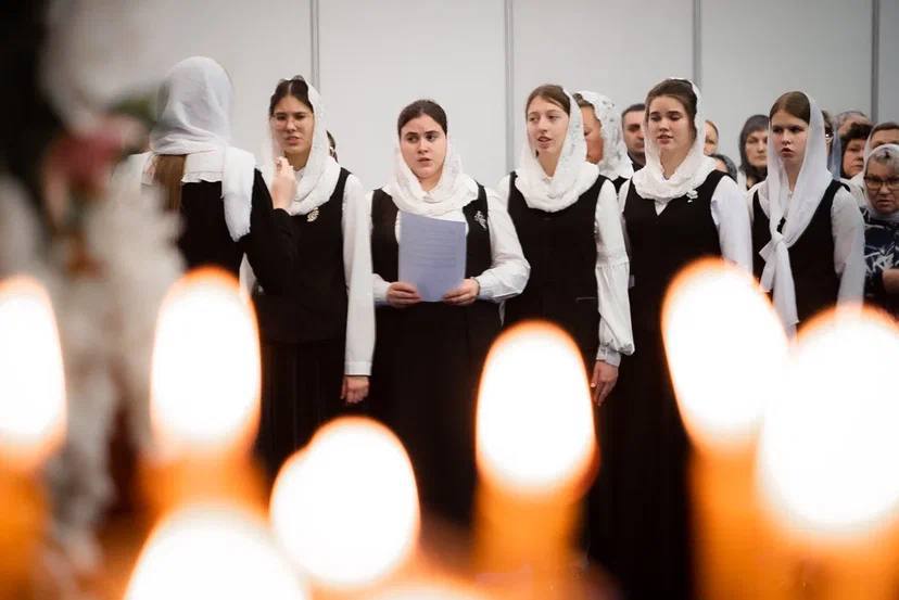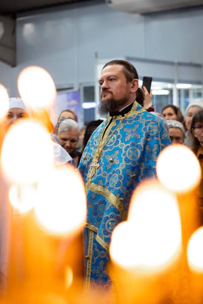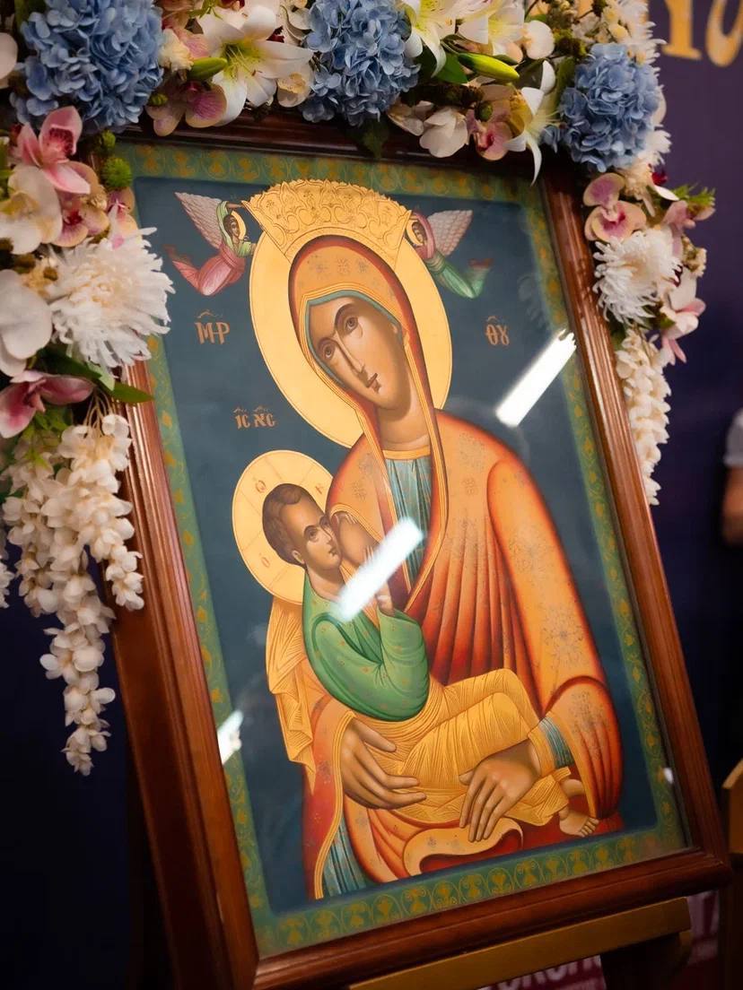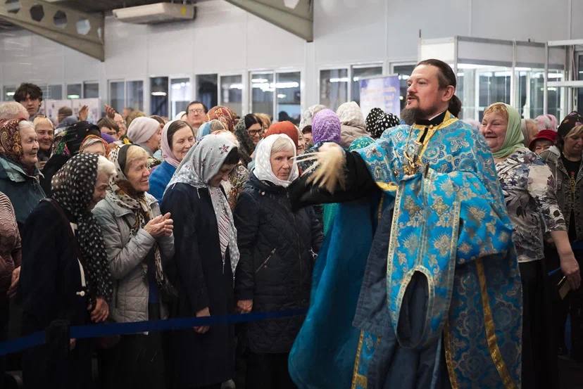 Верующие собрались для совместной молитвы у чтимого образа Божией Матери «Млекопитательница» — одной из особо почитаемых святынь Православной Церкви, представленной на выставке.