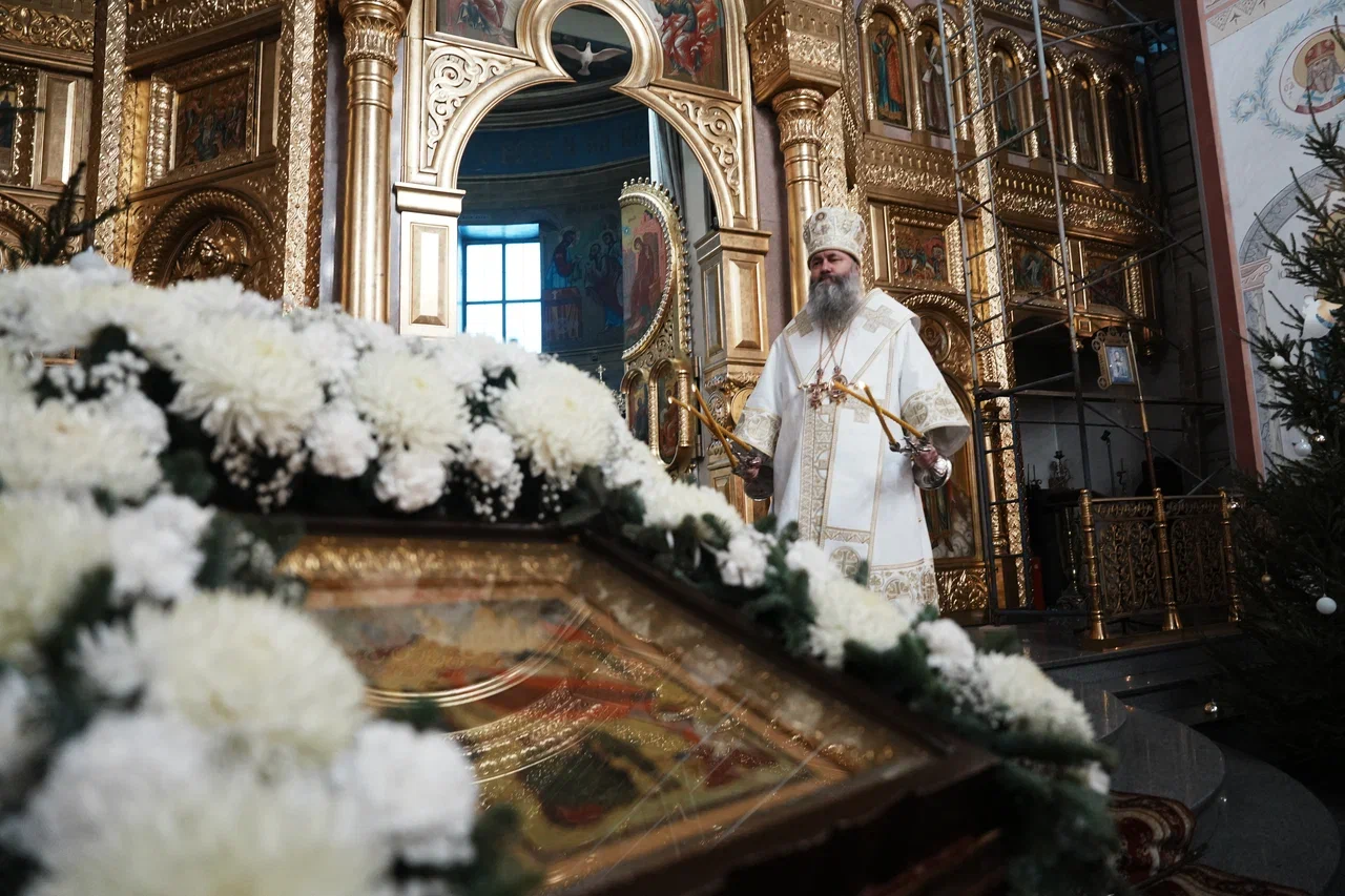 В завершение митрополит Феодосий обратился к духовенству и прихожанам с архипастырским словом. Владыка напомнил о духовном смысле праздника Собора Пресвятой Богородицы, вспоминаемого вместе с памятью праведного Иосифа Обручника, пророка Давида и апостола Иакова, брата Господня.