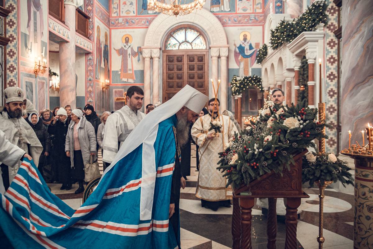 За богослужением молились прихожане и гости собора. По окончании вечерни Высокопреосвященнейший владыка Феодосий огласил Рождественское послание, обращенное к духовенству и верующим Самарской епархии.